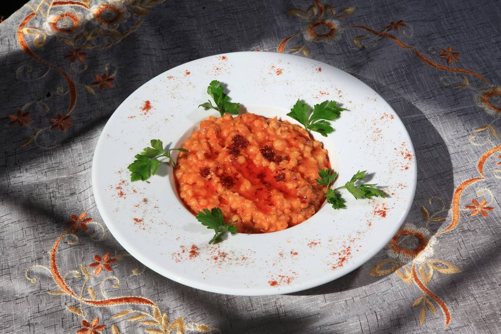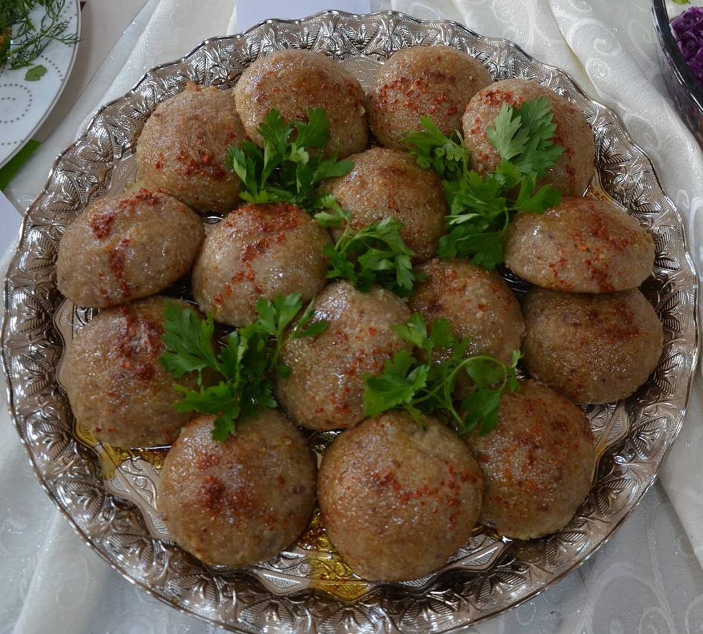 Yağsız et, iki yada üç kez makineden geçirilir ve dövülür. Köftelik bulgurla iyice yoğrulur. Yoğrulan bu malzemeden bir tutam avuç içine alınır ve iyice sıkılır, top haline getirilir, ortasından oyulur ve daha önce hazırlanmış kıyma, soğan, ceviz içi ve pirinç karışımı iç bu oyuğa konarak tekrar kapatılır. Tuzlu suda 20-30 dakika pişirildikten sonra tabaklara konur, üzerine tereyağı dökülerek servis yapılır.
