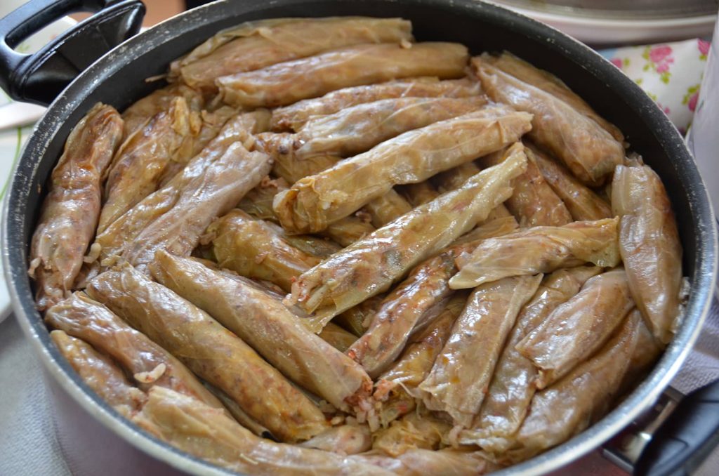 Lahana yaprakları ufak ufak doğranır ve maydanoz, reyhan, soğan ve çeşitli baharatlardan oluşan karışımla birlikte tüpe doldurulur. Ekşi olması için de küpe bir miktar nohut ve hamur atılır. Kışlıktır. Kuru yemeklerin yanında yenildiği gibi içine dövme ya da kemikli et katılıp pişirilerek de yenilebilir.